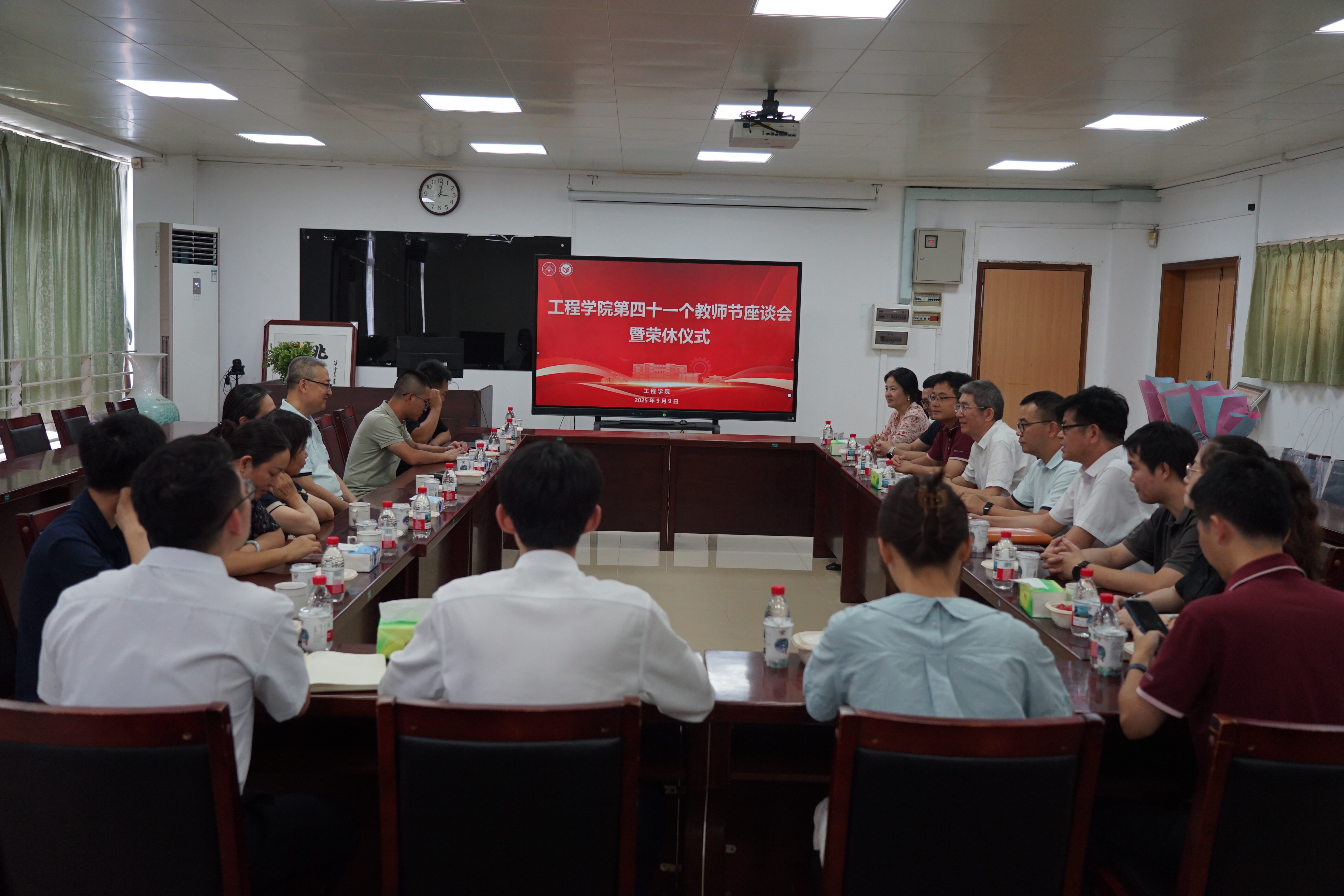 9月9日下午,工程学院在北楼404会议室隆重举行庆祝第41个教师节座谈会暨荣休仪式。学院党政领导班子成员、荣休教师代表与新进教师代表齐聚一堂,共话教育初心,同叙师者情怀,庆祝属于教育工作者的光荣节日。活动由学院部门工会牵头组织,由工会主席张亚莉主持。