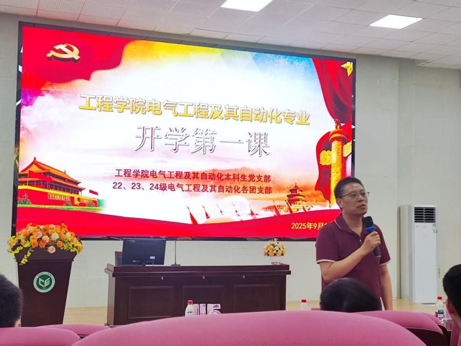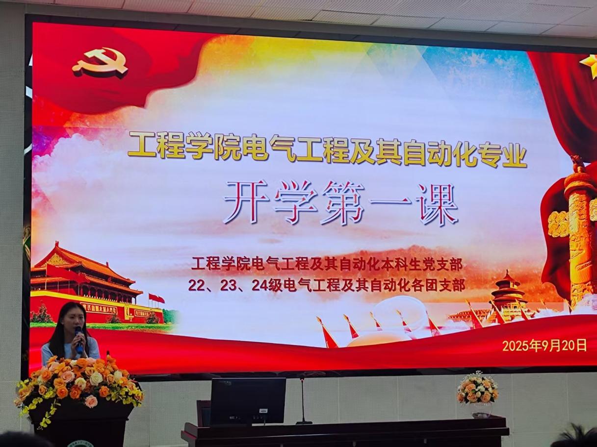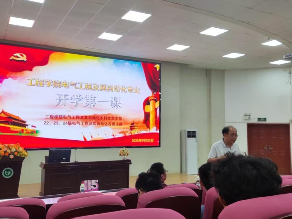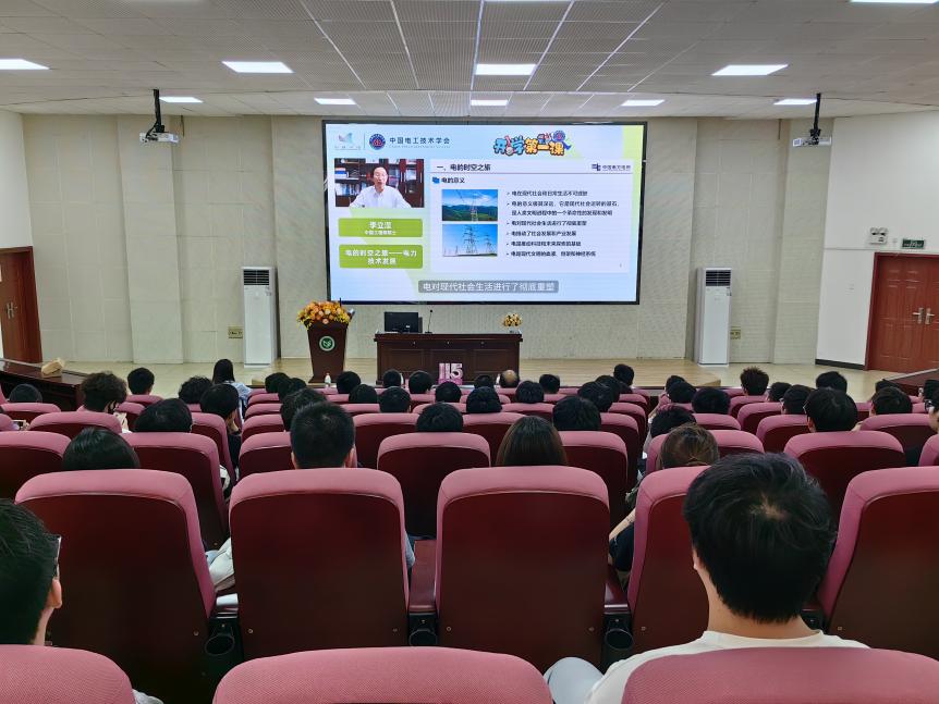 为全面贯彻落实党的二十大和二十届二中、三中全会精神,增强公众科学素质和科普意识,推动科学技术与社会经济发展的对接,普及电气工程专业领域专业知识,共同学习科学精神和科学家精神,2025年9月20日下午,电气本科生党支部组织电气专业学生在工程学院110报告厅一同收看中国电工技术学会开学第一课。电气工程及其自动化本科生党支部书记李雨桐老师、工程学院赵祚喜教授、孙振刚副教授、黄成杰副教授到场与同学们共同收看直播。