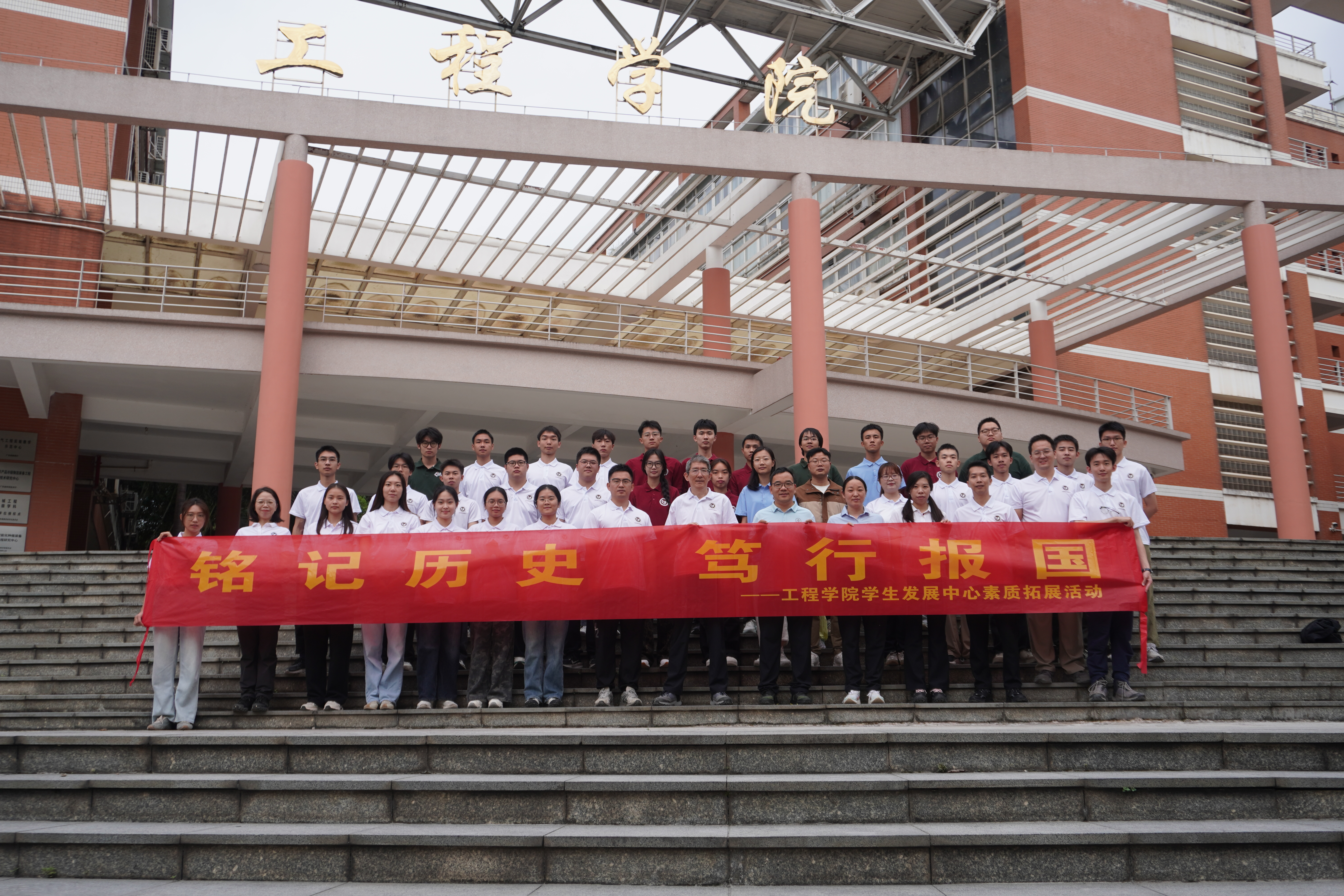 为纪念中国人民抗日战争胜利80周年,厚植青年群体爱国主义情怀,工程学院学生发展中心于2025年10月25日在龙眼洞森林公园开展“铭记历史,笃行报国”主题徒步活动。学院党委书记钱立雄、党委副书记陆永超、学院党政办公室主任李玉荣、全体辅导员、校友代表、教官团工程中队教官代表、学院相关学生组织学生骨干等40余人参加主题徒步活动。众人沿抗战遗址徒步,在实景中回望历史,在实践中凝聚奋进力量。
