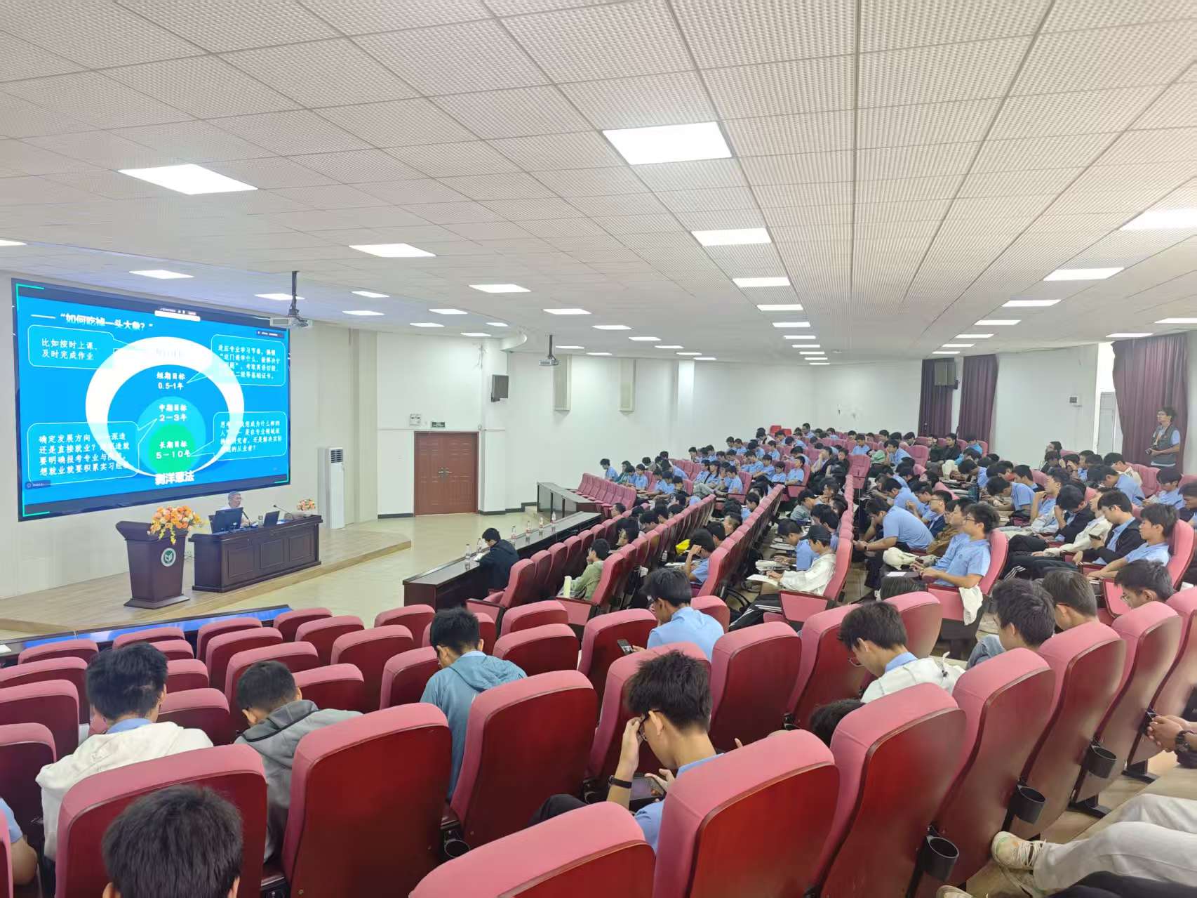 报告会上,学院党委书记钱立雄指出,大学阶段是品格塑造的关键时期,学生应着力培养正直人格、良好习惯与优秀的人际交往能力。通过分析毕业生的发展轨迹,他强调学生之间的能力差距主要源于习惯、行为、品性与认知四个方面的积累差异,并提醒新生,生涯规划必须“始于当下”。