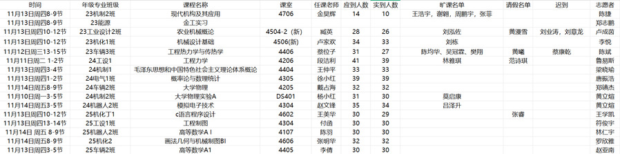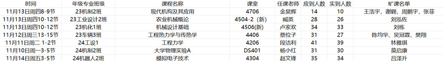 根据2025-2026学年第一学期第十一周工程学院学生会学习部考勤抽查情况,现将考勤结果予以公示。
