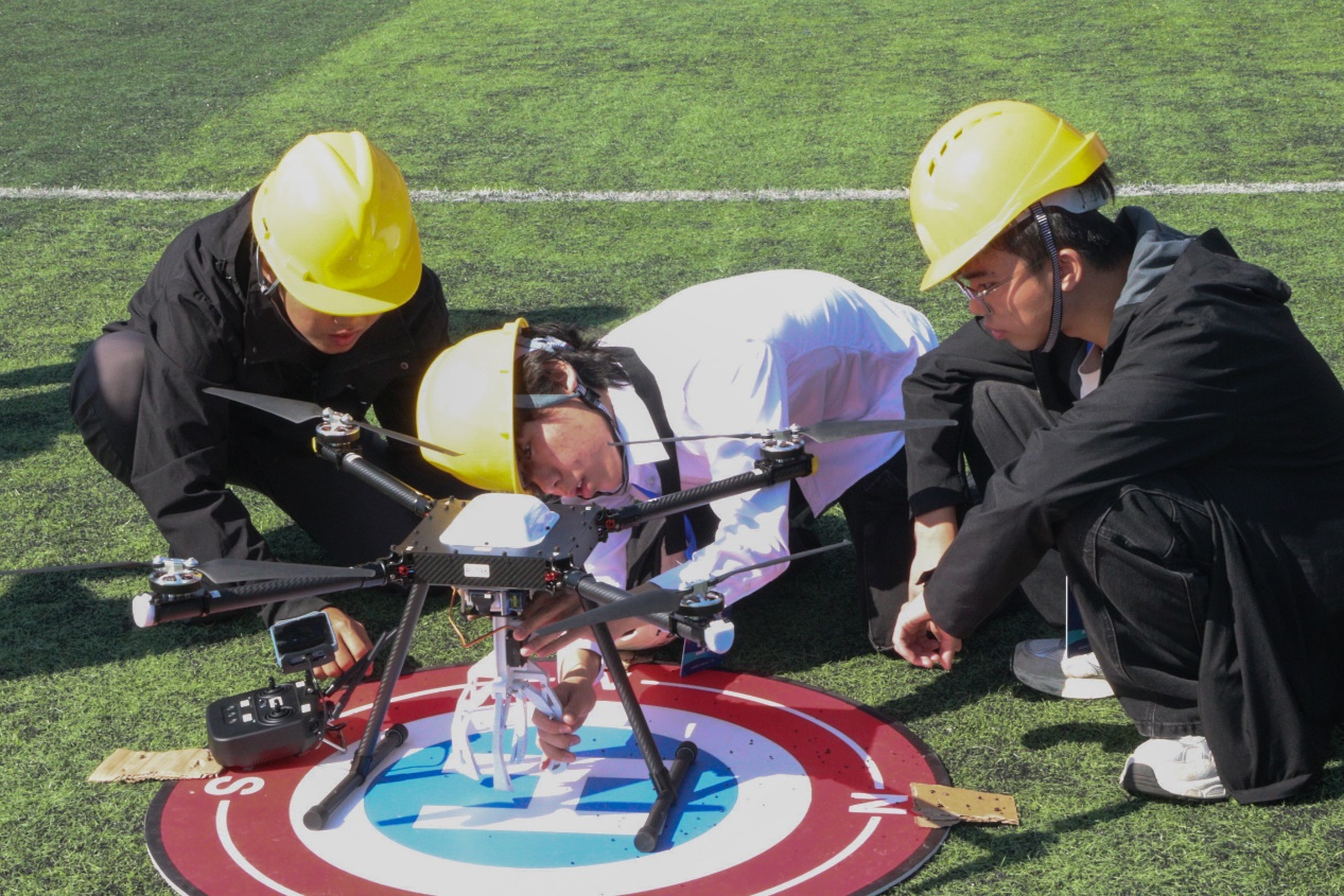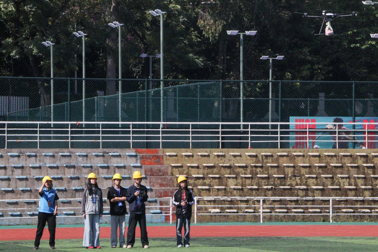 飞行竞技环节在华山运动场举行,由深圳千星云科技有限公司、广州仁用智能科技有限公司等单位提供统一无人机设备与技术保障,确保比赛公平、安全、规范进行。参赛队员需完成无人机夹爪安装、调试与操控任务,执行精准投掷并安全返航。赛场气氛紧张有序,选手们操作熟练、配合默契,充分展现了卓越的工程素养与临场应变能力。