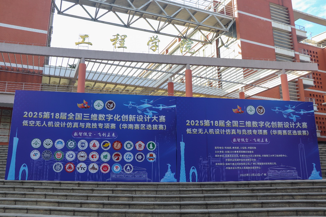 2025年11月23日,由全国3D大赛粤港澳赛区组委会主办、华南农业大学工程学院承办的“第18届全国三维数字化创新设计大赛低空无人机设计仿真与竞技专项赛华南赛区选拔赛”在我校隆重举行。本次大赛以“数智低空·飞创未来”为主题,汇聚了来自海南大学、桂林航天工业学院、香港职业训练局及广东省内26所高校的99支参赛队伍、数百名师生同台竞技,共同呈现了一场科技与实践深度融合的创新盛宴。