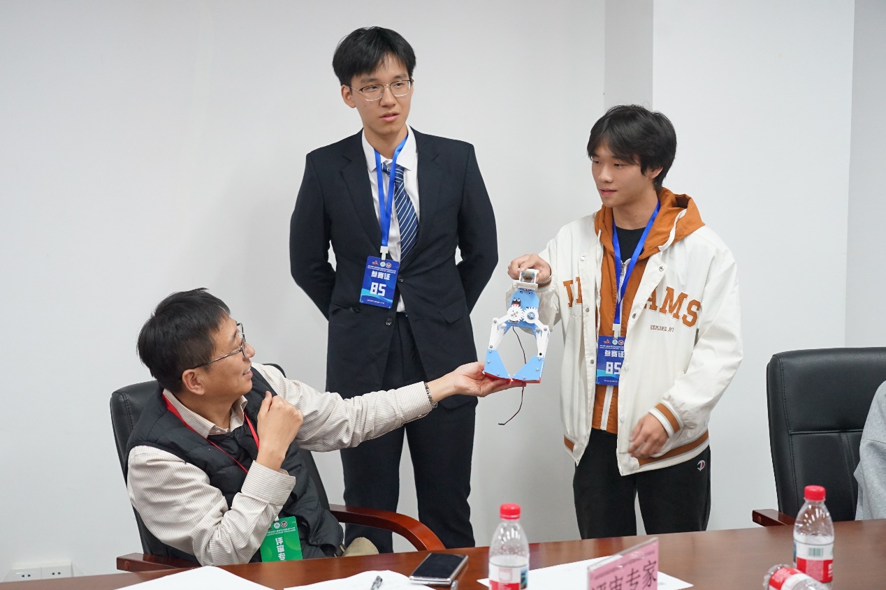 在项目答辩环节,参赛选手从不同的技术创新点出发,系统阐述了无人机爪机力学结构、飞行模型规划以及夹爪的制作过程与核心理念,展现出扎实的专业功底与创新思维。评审专家结合产业实际与专业理论,就结构优化、商业化潜力等方面提出建设性意见,为项目后续完善提供有效指导。