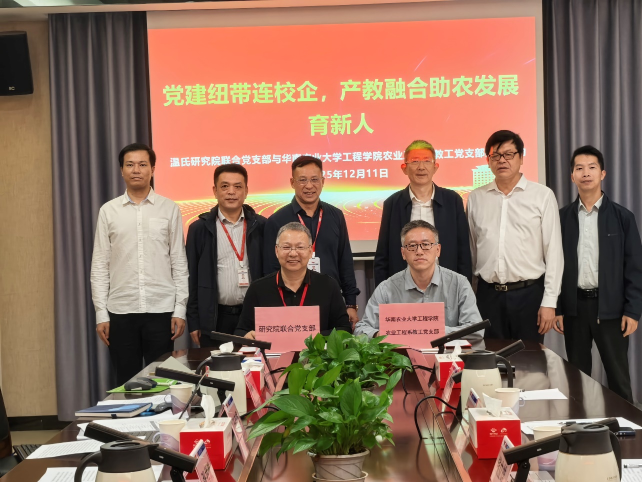 12月11日下午,工程学院党委农业工程系教工党支部与温氏食品集团股份有限公司研究院联合党支部开展结对共建活动。学院党委书记钱立雄,学院党委委员、副院长沈创之,农业工程系教工党支部书记李继宇教授一行参加活动。