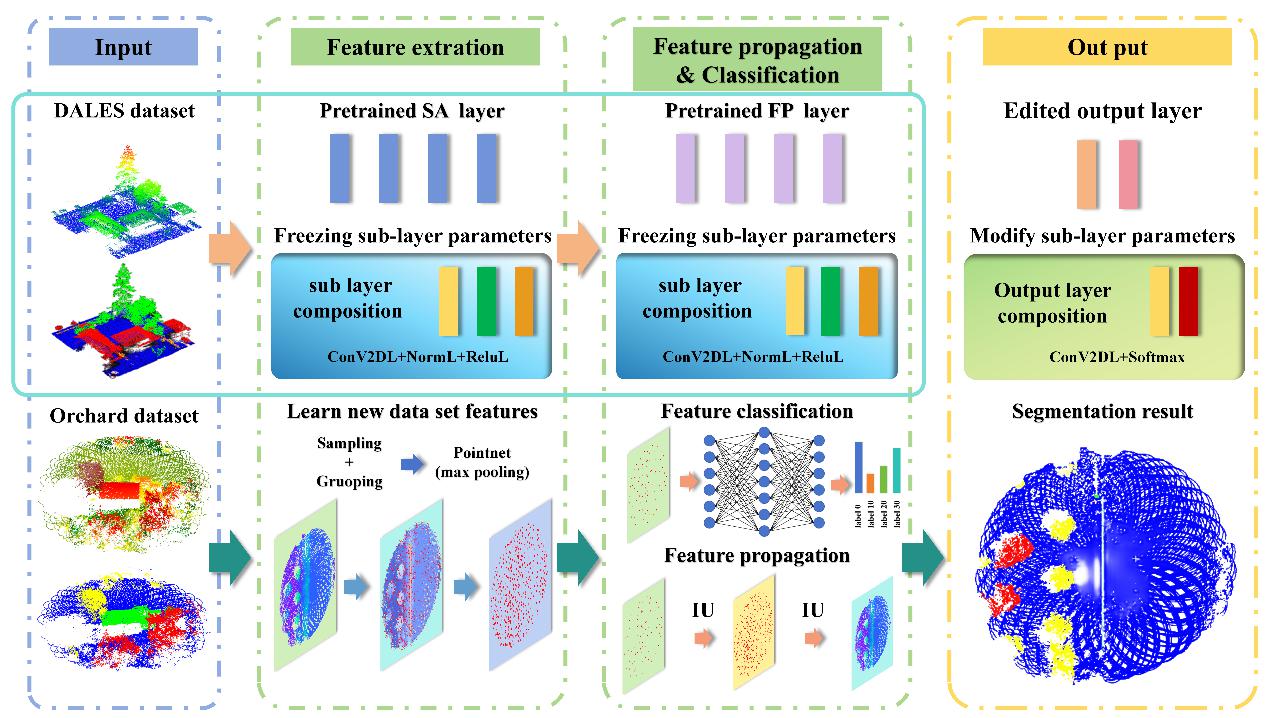 该研究针对无人机在复杂地形下建图时存在的Z轴(垂直方向)漂移,以及小样本数据导致果园语义分割精度不足等关键问题,提出了一种融合多传感器SLAM与迁移学习的研究方法。研究团队构建了名为LIG-LIO的紧耦合激光雷达SLAM框架,并在此基础上对PointNet++语义分割模型进行了针对性优化与改进,系统分析了GNSS数据在抑制建图垂直漂移中的作用机制,揭示了迁移学习在提升小样本果园场景分割精度方面的重要潜力,有效提升了复杂果园环境感知与果树个体信息自动化提取的精度与鲁棒性。