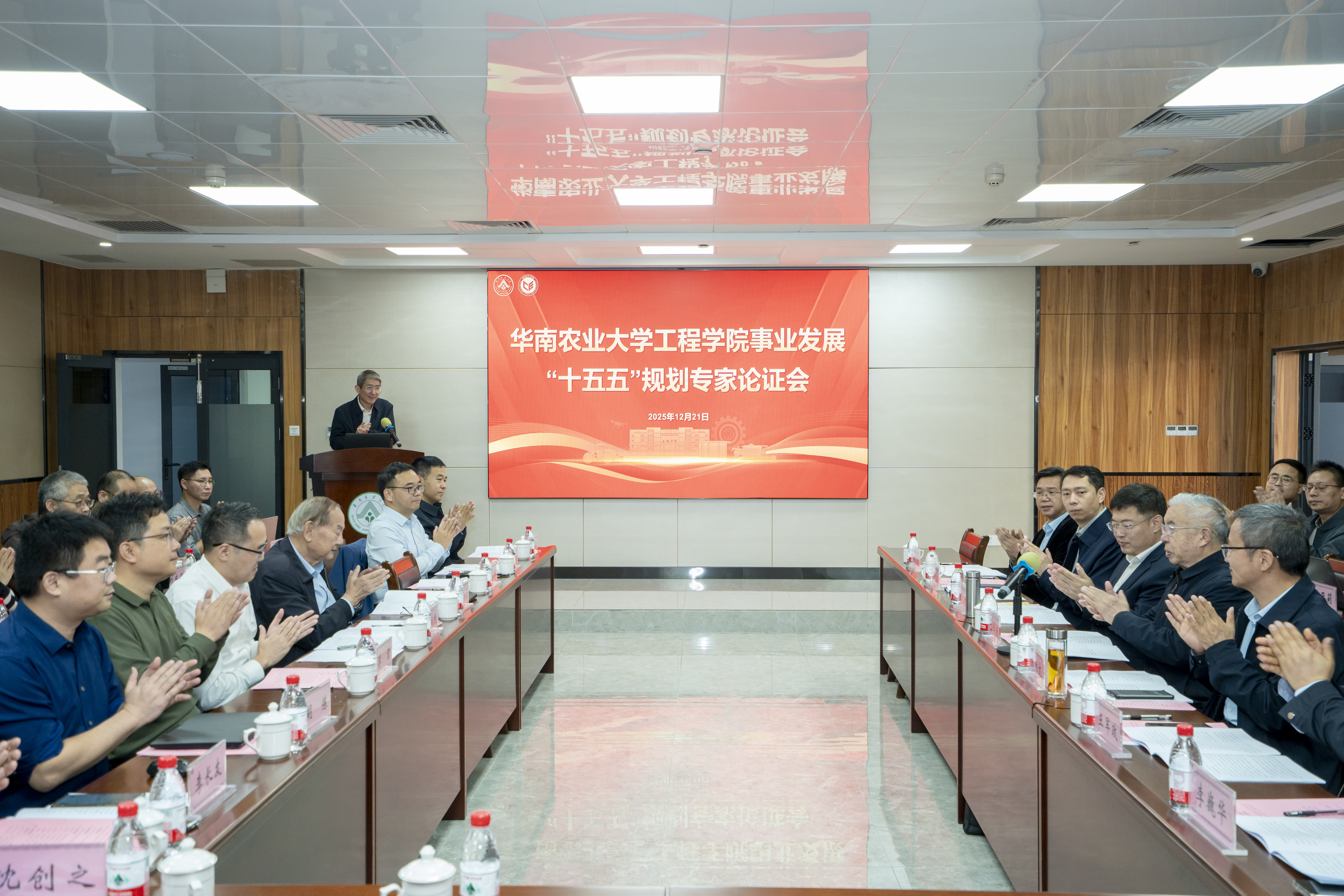 为科学谋划学院未来五年发展蓝图,切实推进学院事业发展“十五五”规划编制工作,12月21日,工程学院在农业工程楼113报告厅召开事业发展“十五五”规划专家论证会。会议特邀中国工程院院士、石河子大学研究员陈学庚,中国工程院院士、中国农业大学教授李洪文,教育部工程专业教指委委员、北京理工大学教授王军政,以及吉林大学教授吴文征、华南理工大学教授李巍华、广东海洋大学教授杨洲、浙江理工大学教授俞高红等专家组成的专家组,为学院事业发展把脉定向、建言献策。副校长仇荣亮、中国工程院院士罗锡文出席参会。会议由工程学院党委书记钱立雄主持。