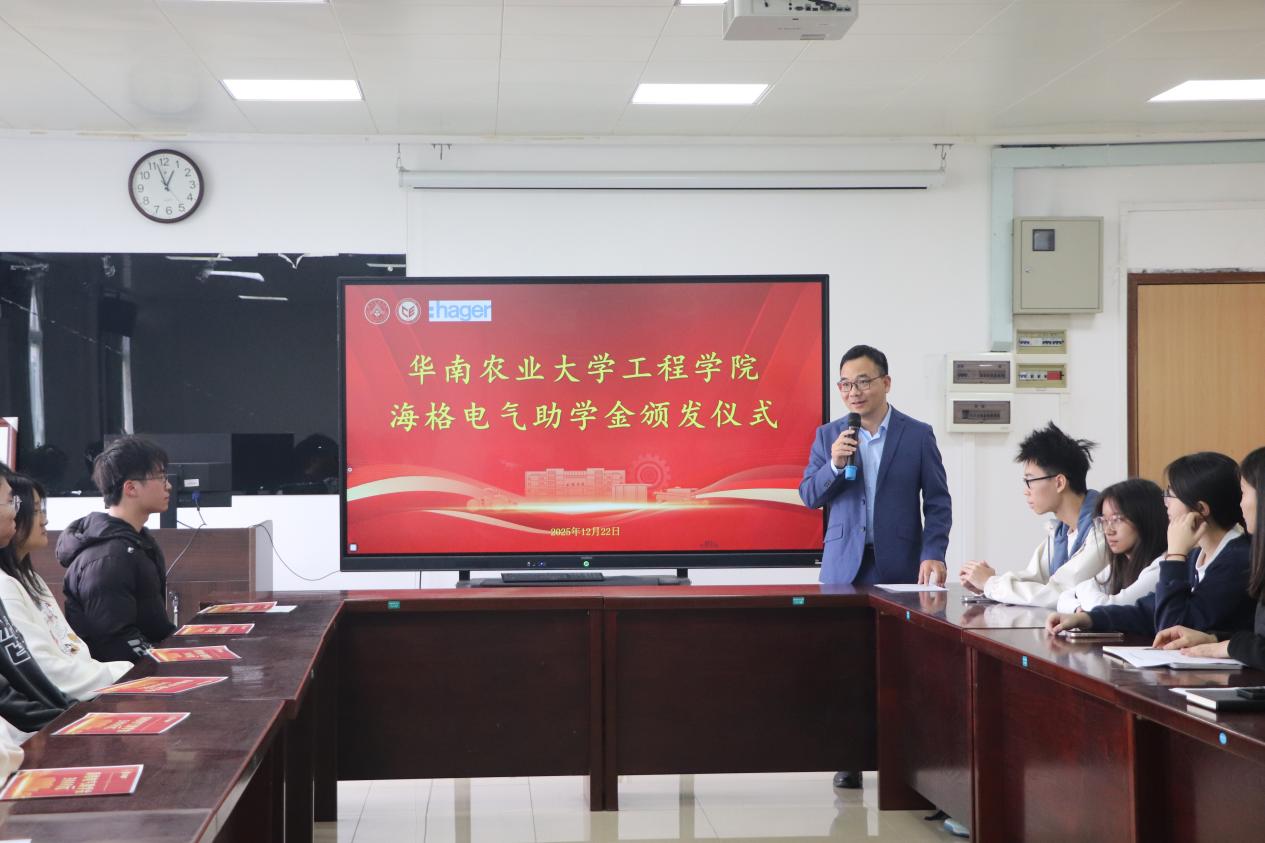 2025年12月22日中午,海格电气助学金颁发仪式在工程学院北404会议室成功举办,学院党委副书记陆永超、辅导员林冰冰、曾小晖、全体受助学生及各年级学生代表共同参加此次活动。