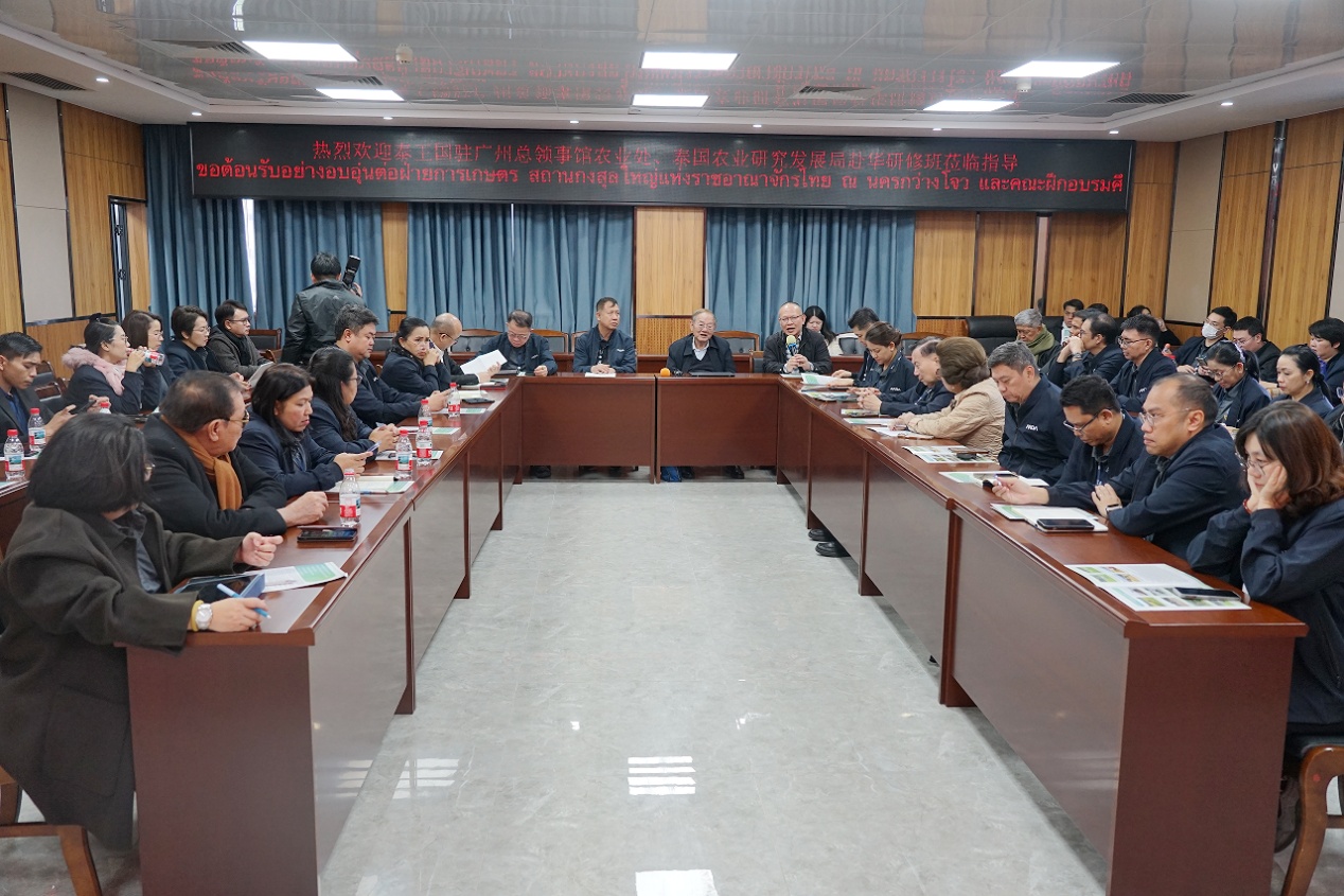 学院相关部门负责人陪同参观。泰王国驻广州总领事馆农业处农业领事陈英才(Mr. Nopparat Buahom)、翻译吴钢坚、职员刘思源(Mr. Jedtana Laorakvong)陪同来访。