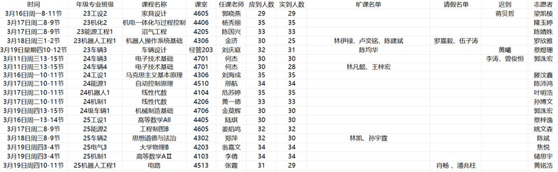 根据2025-2026学年第二学期第三周工程学院学生会学习部考勤抽查情况,现将考勤结果予以公示。