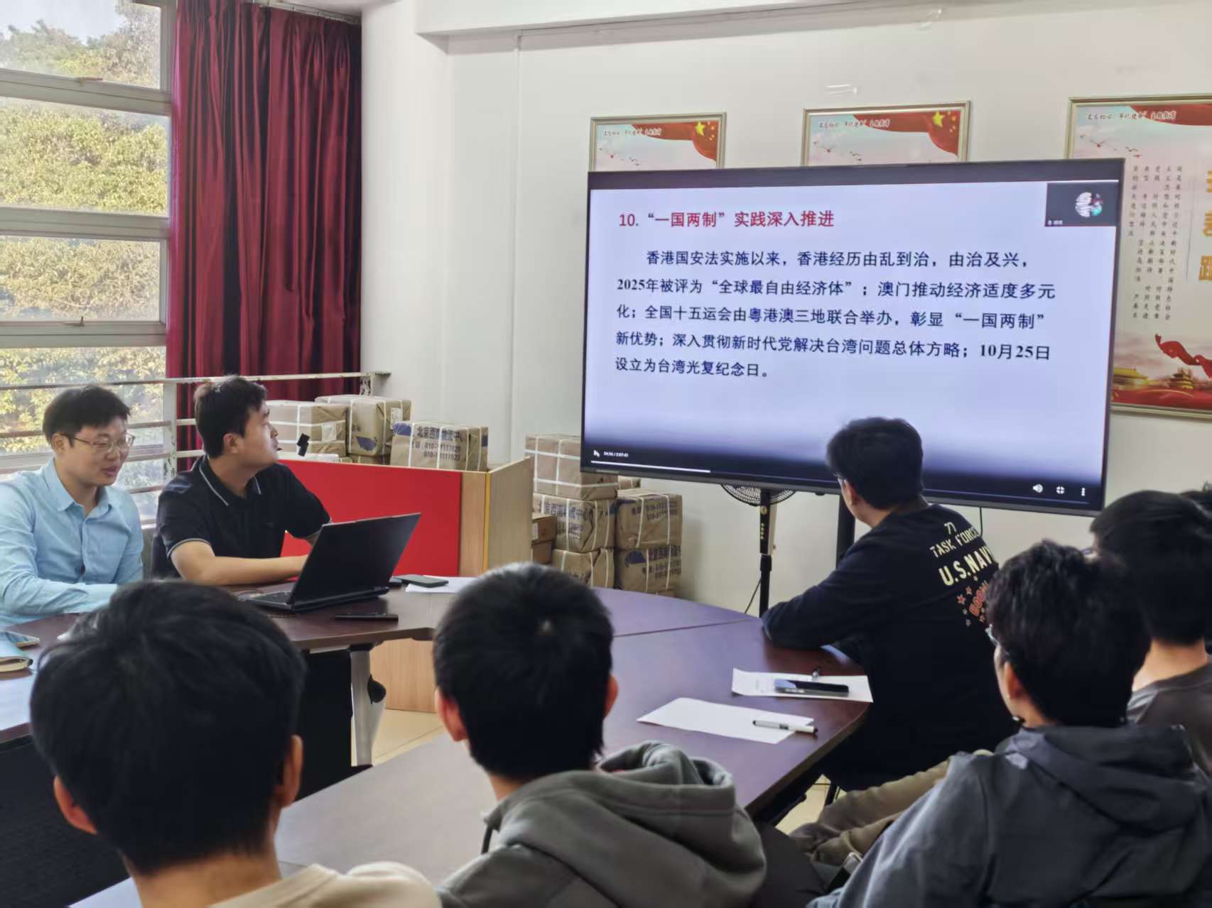 2026年3月,工程学院博士生党支部支部书记郑峰老师给挂钩的25级博士生团支部讲授《“十五五”时期经济社会发展的指导思想、重大原则和根本保障》主题团课。