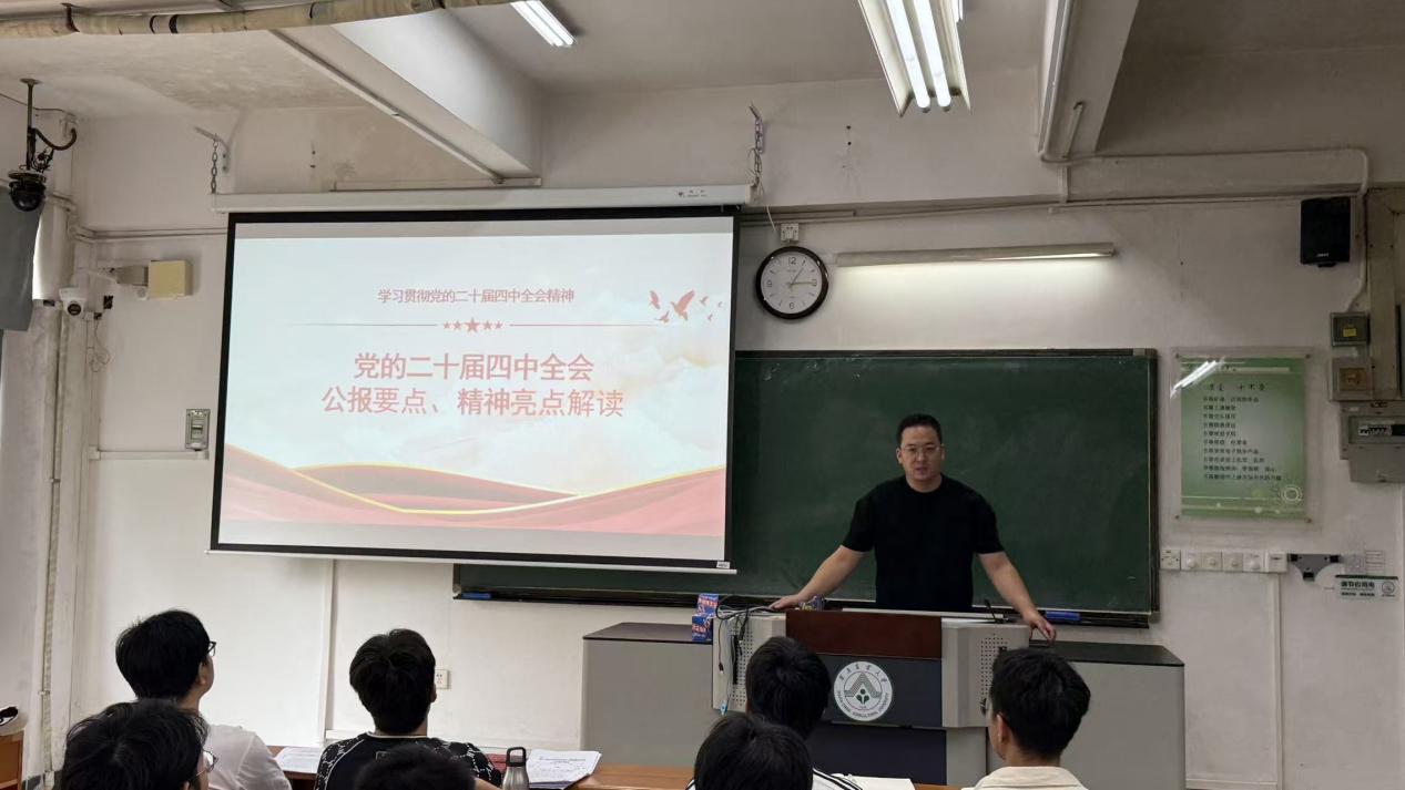 院研究生指导老师以“党的二十届四中全会公报要点、精神亮点解读”为主题,对全会精神进行了系统阐述和深入讲解。讲解内容紧扣核心要义,结合时事热点,帮助同学们深化理解。学习现场全体参会人员精神饱满,专注聆听,认真记录,展现出良好的学习风貌。
