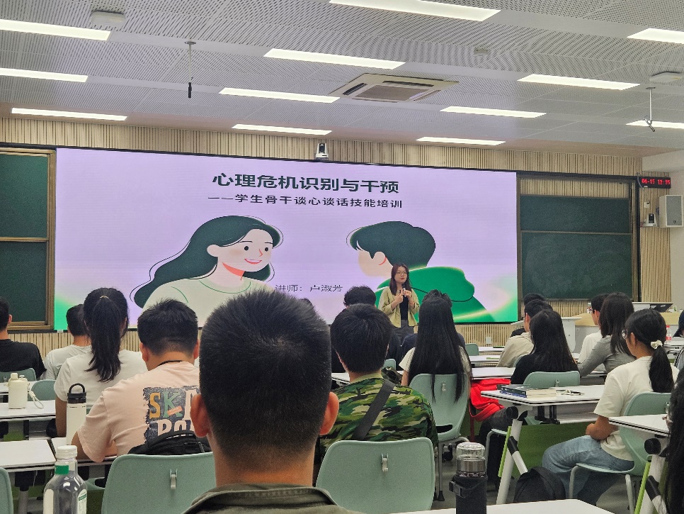为提升学生骨干在心理健康工作中的朋辈支持能力,筑牢校园心理安全防线,2026年4月15日,工程学院在教四402教室举办了主题为“心理危机识别与干预——学生骨干谈心谈话技能培训”的专题培训。本次培训由学院“心灵家园”指导老师梅宏玉主持,特邀馨馨逍遥高级心理咨询师卢淑芳老师主讲,各学生社团骨干、各班级心理委员参加了学习。